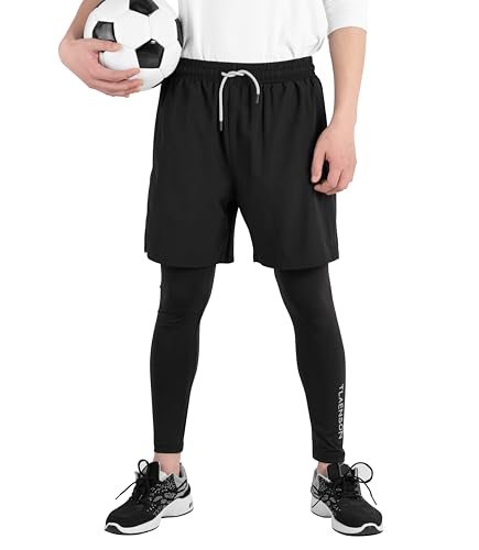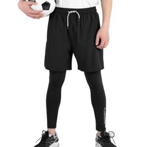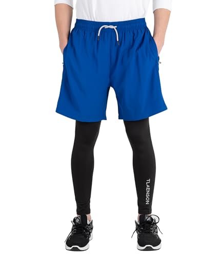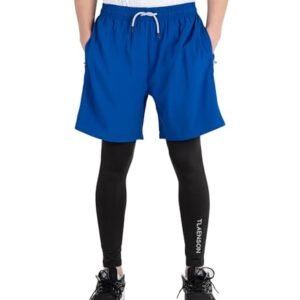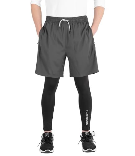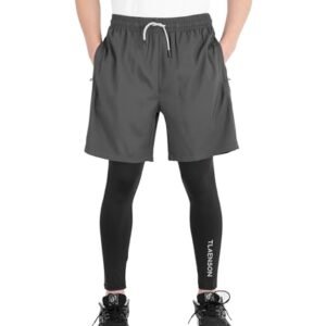 TLAENSON Boys Compression Pants Kids 2 in 1 Football Sports Leggings with Shorts with Zipper PocketsAvailability: 8512 in stock