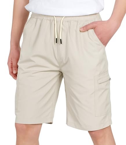 TLAENSON Boys Lightweight Cargo Shorts Youth Drawstring Quick Dry Shorts Kids Hiking Short with Zipper Pockets